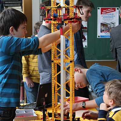 Genau für diesen Ansatz ist fischertechnik das perfekte Werkzeug. Nicht als „Lernbausatz“, wie von Didaktik-Material-Anbietern vertrieben, sondern als „Baumaterial“ für die Lösung technischer, im Idealfall selbst gestellter Aufgaben: Wie baut man einen Free-Fall-Tower? Wie einen Sessellift? Wie eine Achterbahn? Wie konstruiert und programmiert man einen (3D-) Plotter? Wie einen Containerkran? Wie realisiert man eine Uhr, einen Elektromotor, einen „Atomzeitempfänger“? Bei der Lösung solcher konstruktiver Aufgabenstellungen stoßen Schülerinnen und Schüler auf Unmengen von Detailproblemen, und werden feststellen, dass Mathematik, Physik und Informatik dabei helfen: Wie berechnet man die Übersetzung eines Uhrgetriebes? Wie wirken Kräfte, und wie lässt sich ein statisches Gebilde wie eine Achterbahn stabilisieren? Wie arbeitet eine Wirbelstrombremse? Welche Algorithmen helfen bei der Steuerung einer Plotter-Bewegung?