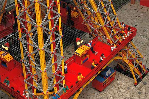 Bis heute hat der Eiffelturm nichts von seiner Faszination verloren. Er ist eines der (auch im Wortsinne) herausragendsten Bauwerke des Fachwerk-Stahlbaus der Jahrhundertwende und hat viele spätere Brücken- und Bahnhofskonstruktionen inspiriert. Natürlich auch fischertechniker – denn die Statik-Bauteile der fischertechnik-Kästen laden geradezu ein, sich an der wunderschönen Konstruktion von Gustave Eiffel zu versuchen. Einige Konstruktionen lassen sich im Bilderpool der ft-Community bewundern, wie z.B. der Turm von Ben Halverkamps (2010) oder das übermannshohe Eiffelturm-Modell von Rob van Baal (2008). Und wer ganz weit „zurückblättert“, findet das wahrscheinlich erste fischertechnik-Eiffelturm-Modell mit schönem Begleitartikel in Ausgabe 3/1970 der „Nachrichten des fischertechnik-Clubs“ auf Seite 12-13.