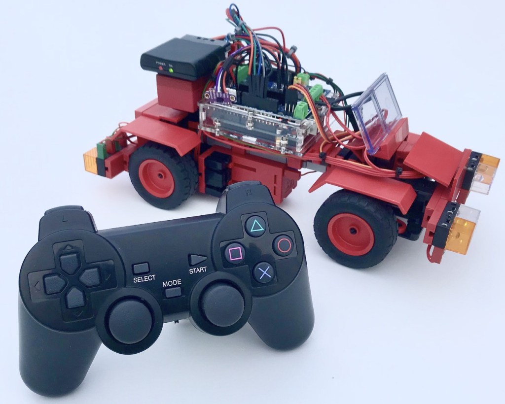 Nichts gegen Spiele. Jedenfalls im Allgemeinen. Auch nichts gegen Computerspiele (wie häufig im Leben schaden die wenigsten Dinge, solange sie in Maßen genossen werden) – besonders, wenn sie selbst gebaut sind und auch noch etwas Realitätsbezug besitzen. Gerade publizierte der Holländer Arnoud van Delden eine wundervolle Anwendung eines kabellosen Playstation-2-Gamepads (für unter 20 € im Internet erhältlich) als Steuerung für ein fischertechnik-Fahrzeug. Zusammen mit einem Arduino, der PS2-Bibliothek von Bill Porter, ein paar Steckbrücken und einem wenige Zeilen langen Sketch wird aus der Spielkonsolenerweiterung eine leistungsfähige Funkfernsteuerung im 2,4-GHz-Band – mit Vibrations-Rückkanal.
