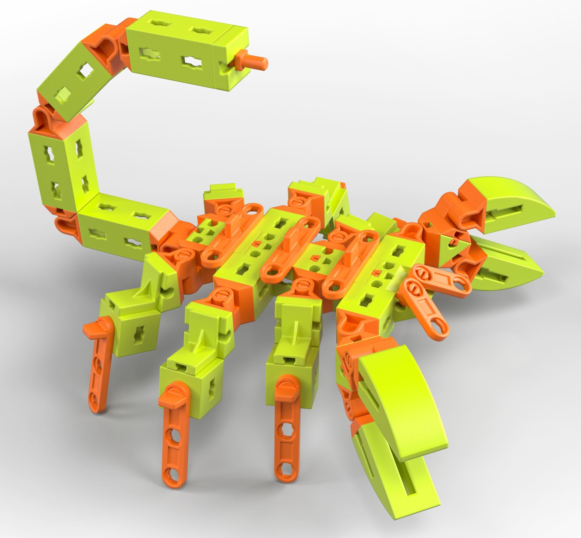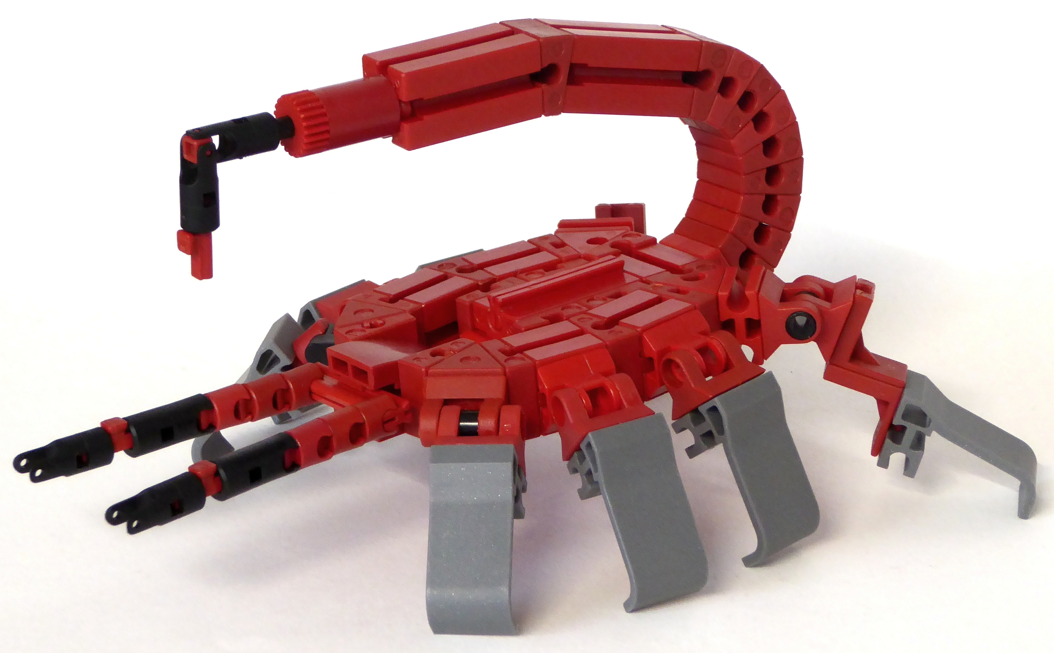 Aber es steht außer Frage, dass das fischertechnik-Modell gelungen ist – und dass fischertechnik pfiffige Ideen der Fans aufgreift und weiterentwickelt, ist ebenfalls erfreulich. Allerdings hat fischertechnik unterschätzt, wie schnell fischertechniker zu Zoologen werden, wenn es darauf ankommt. Wenige Tage nach Veröffentlichung der Pressemitteilung war klar, dass fischertechnik zoologisch „gepatzt“ hat: Ein Skorpion ist ein Gliederfüßler mit vier Beinpaaren. Ein genauer Blick auf die Vorbilder der fischertechniker hätte geholfen… Jedenfalls erwarten die fischertechniker jetzt gespannt, wie viele Beine die Spinne, die Eidechse, die Katze und das Pferd haben werden, die ebenfalls in dem Baukasten enthalten sein sollen.