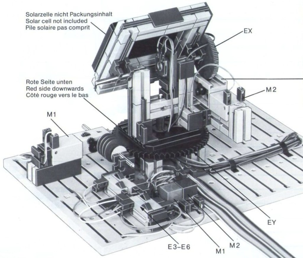 Die Nutzung von Solarenergie ist inzwischen eine Selbstverständlichkeit. Bis es soweit war, gingen allerdings Jahrzehnte ins Land. Sehr zur Verwunderung eines jeden (geschichtsbewussten) fischertechnikers – denn schon im ersten Computing-Baukasten von fischertechnik aus dem Jahr 1984 war ein „Solarzellen-Nachführer“ enthalten, der eine Solarzelle nach dem Sonnenstand ausrichtet.