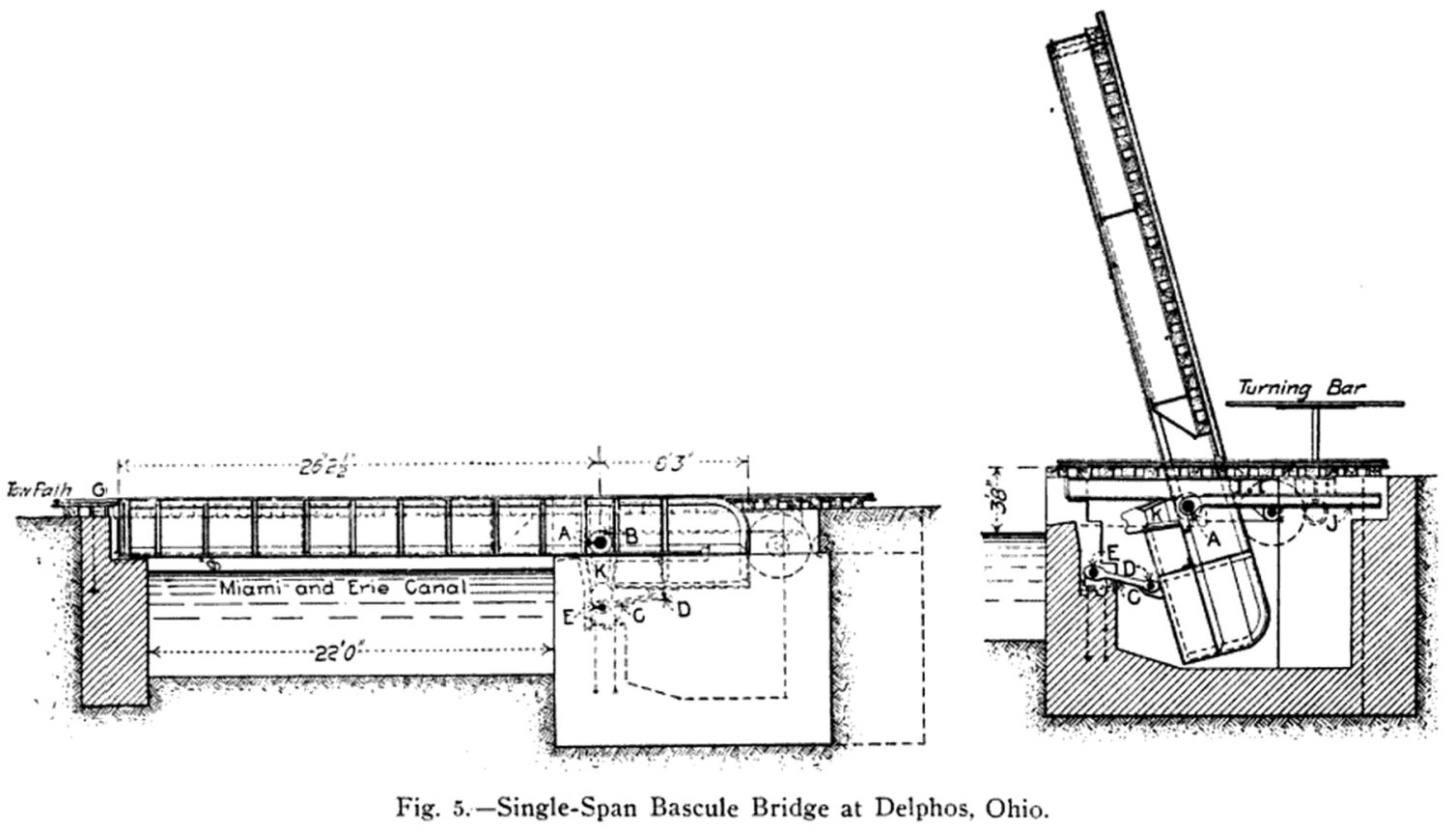 Eine weitere noch funktionsfähige Rall Bascule Bridge derselben Bauart gibt es offenbar in Multnomah County, Oregon. Und bereits 1901 wurde eine solche Brücke von Theodor Rall in Delphos (Ohio) errichtet; sie musste inzwischen einer neuen Brücke weichen (Abb. 4).