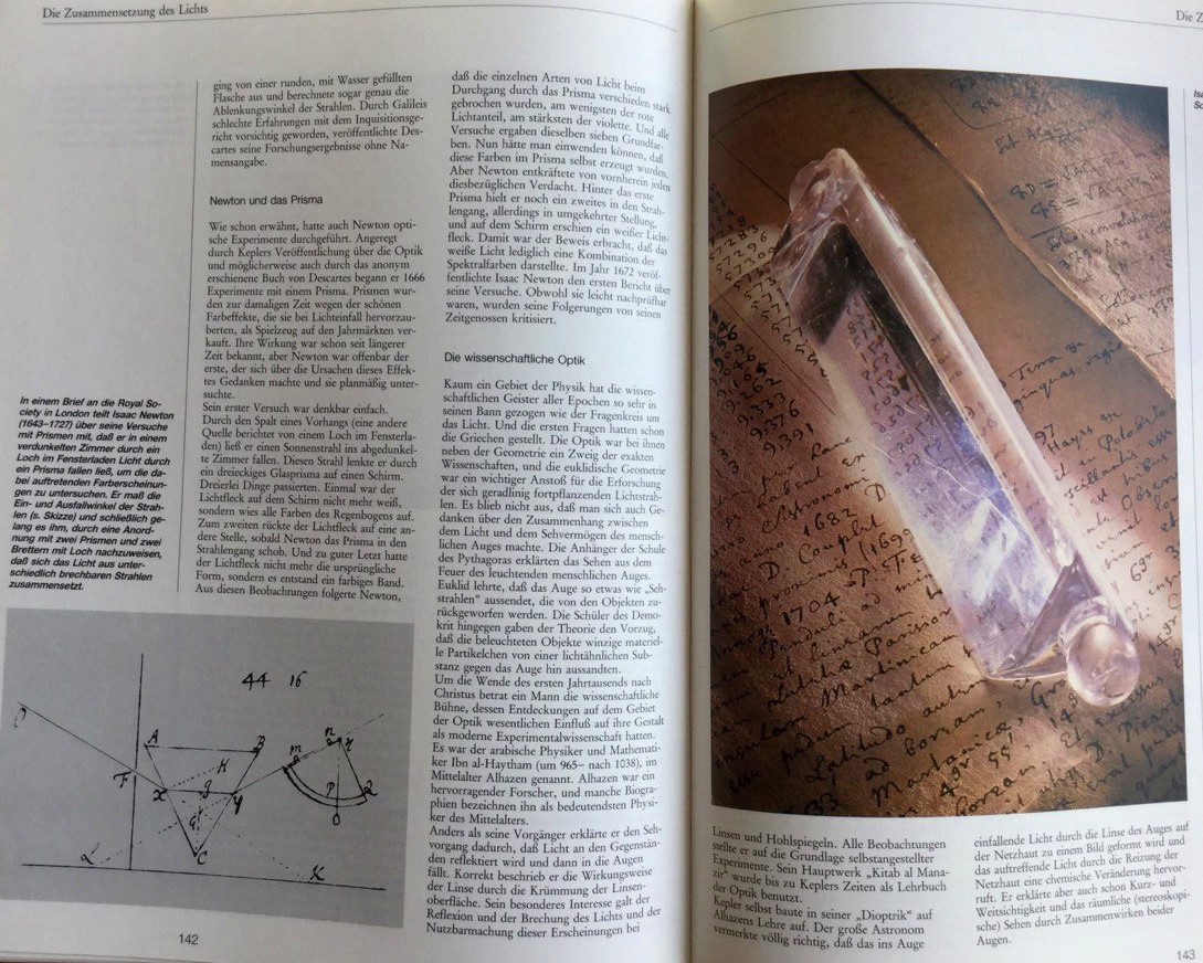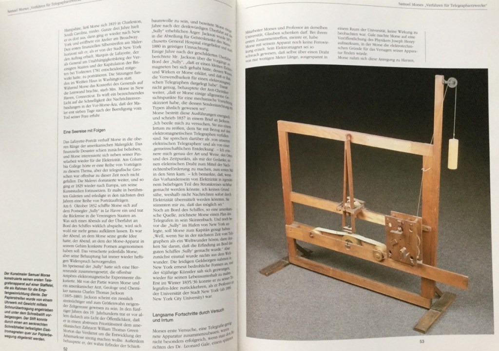 Ein solches Werk ist die achtbändige Buchreihe „Naturwissenschaft und Technik“, die 1991 im Verlag Zweiburgen erschien. Drei der Bände haben mich geradezu „angesprungen“: „Nachrichtentechnik“, „Radio-Fernsehen-Computer“ und „Schall-Bild-Optik“. Natürlich fehlen in den Darstellungen die jüngsten 30 Jahre und sind weder Frisuren noch Kleidung der abgebildeten Personen auf der Höhe der Zeit – aber der Rest ist eine kleine Sensation. Auf wundervolle Weise werden die technische Zusammenhänge mit anschaulichen Grafiken erläutert und technikgeschichtlich beschrieben – mit unzähligen Abbildungen historischer Dokumente und (Original-) Geräte in seltener Vollständigkeit.