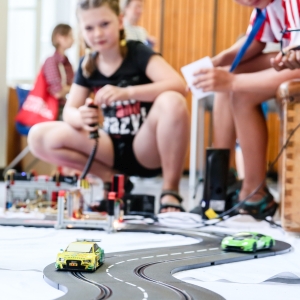Wie fischertechniker mit Carrera-Bahnen spielen.